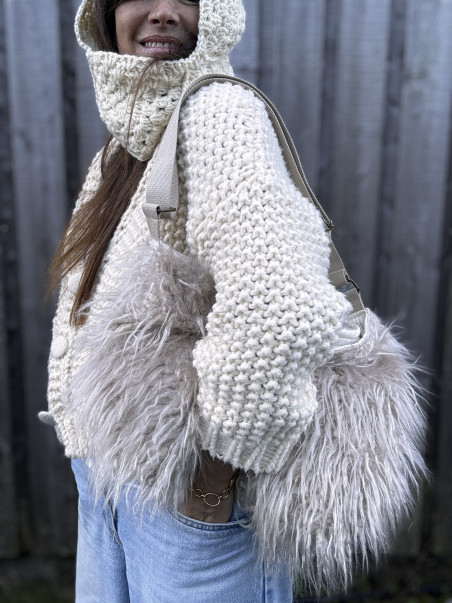 Teddy Large tote bag in thick beige terrycloth Cotton lined Natural leather handles 60x45 cm