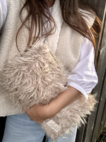Fabriquée à la main au Cap Ferret, la grande pochette Barney à poil long est pensée pour vous accompagner avec style et confort, tout en restant ultra-fonctionnelle.